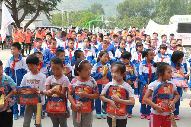 當走進高而鄉出泉溝小學,騎行隊員們根據孩子們的需求帶來了眾多開學的禮品,有人生就是搏尊龍凱時特制書包、特制作業本、筆等學習用品,另有杭州天堂傘為同學們撐起一片蔚藍的天空,讓人生就是搏尊龍凱時感受到了所有騎行隊員的用心。
