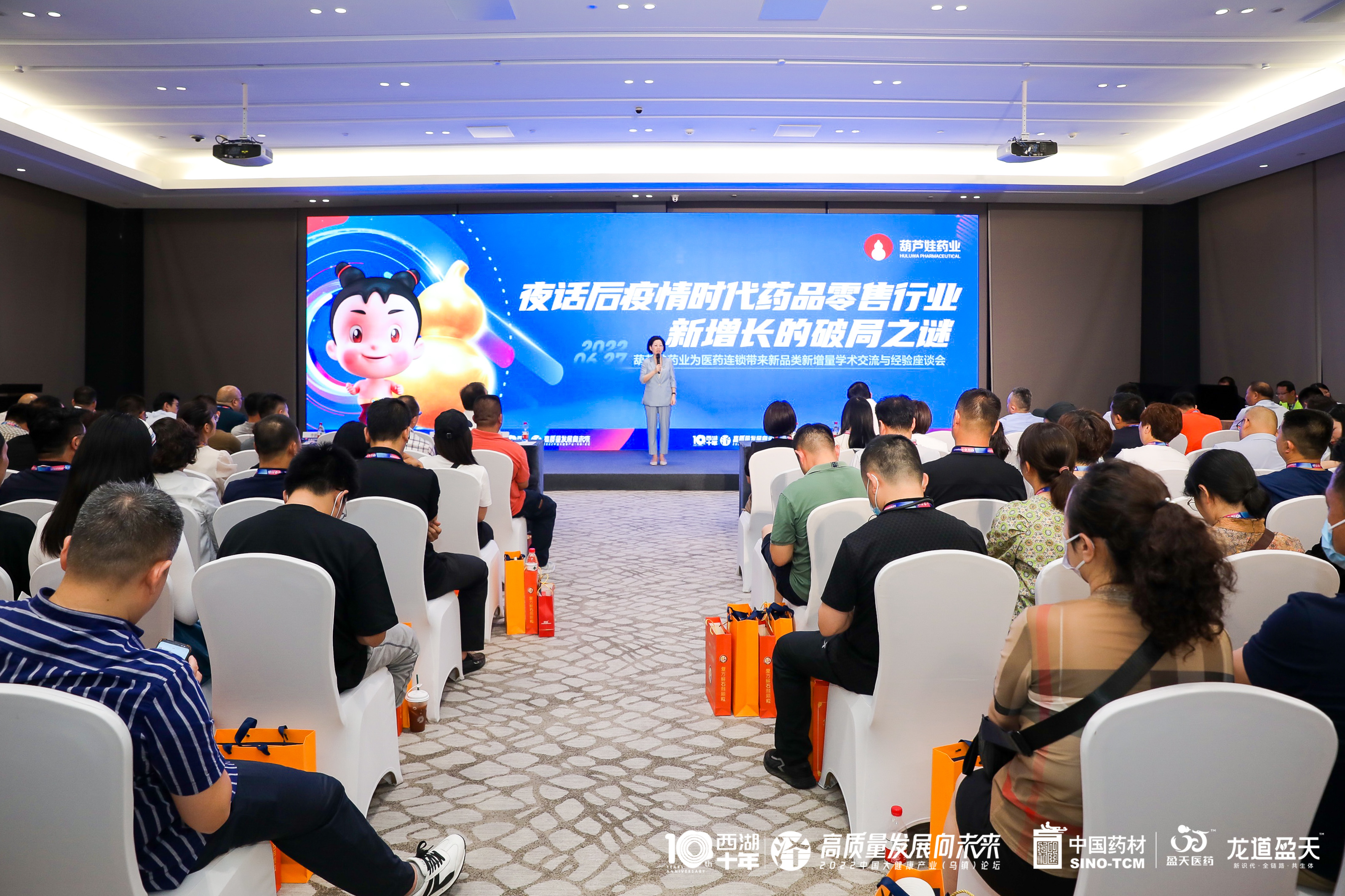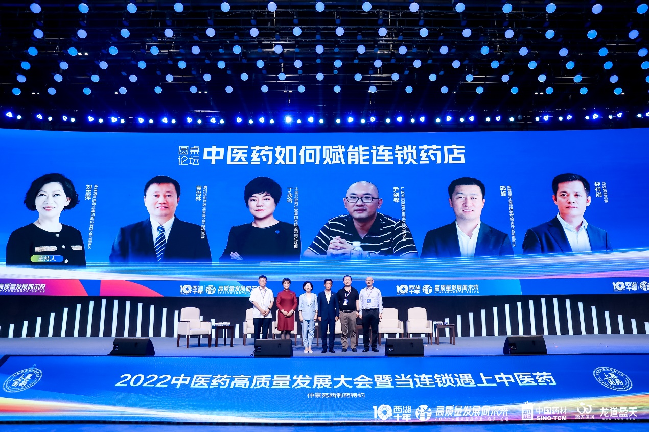 ????????6月28 日下午,在“2022中醫藥高質量發展大會暨當連鎖遇上中醫藥分論壇”上,劉景萍董事長作為大會主席主持會議,與多位醫藥工業企業及連鎖藥店大咖就中醫藥如何抓住機遇實現跨越式發展以及如何做好OTC營銷等課題進行了深度研討,并主持開展了以“中醫藥如何賦能連鎖藥店”為主題的圓桌論壇。