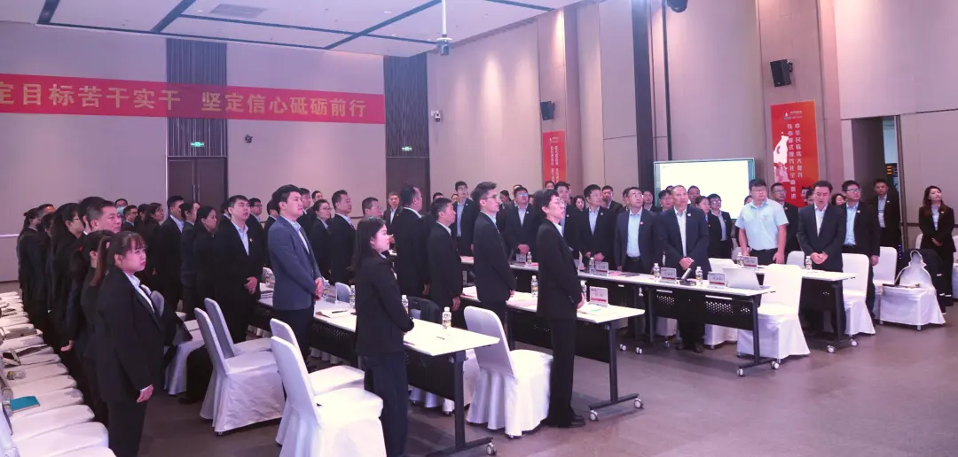 會議在莊嚴的國歌中拉開序幕,全體與會人員精神飽滿,士氣高昂。